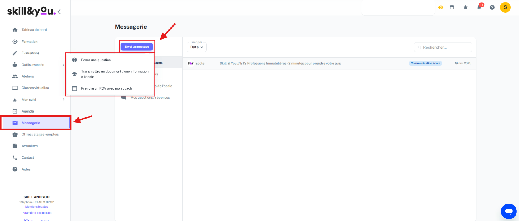 Pour envoyer votre message à l'école, cliquez enfin sur le bouton «Envoyer».